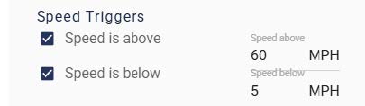 • Speed is Above – An event is created when vehicle speed goes above the set limit within the area of the geofence.