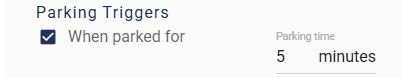 • When Parked For – An event is created when a vehicle is parked formore than the specified time within the geofence.