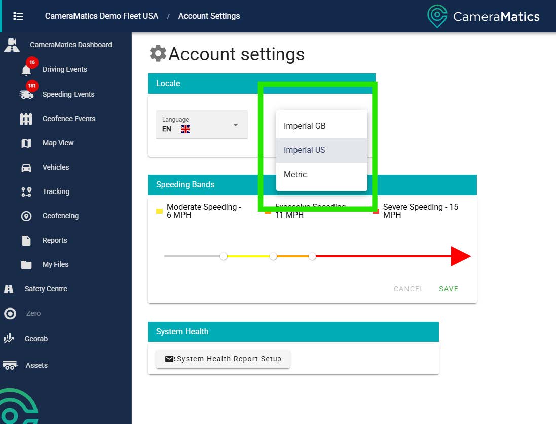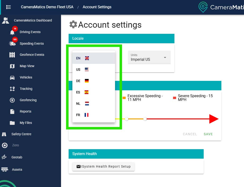 Adjusting your account settings helps ensure everyone is working in a language and with units they understand. It also enables fine-tuning of elements like speeding tolerances according to your own company policy, ensuring the platform works the way you want it to.