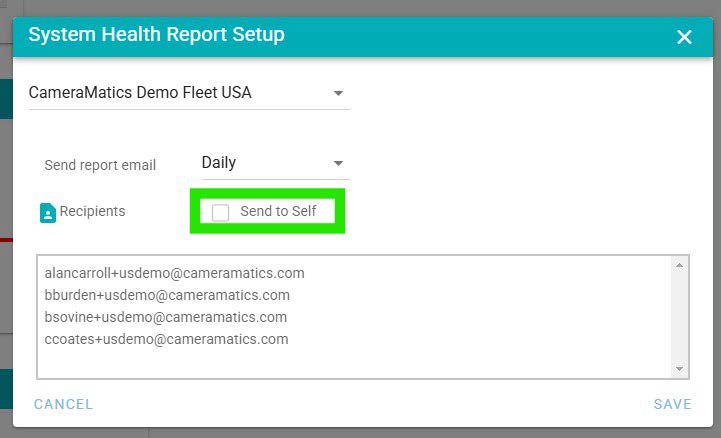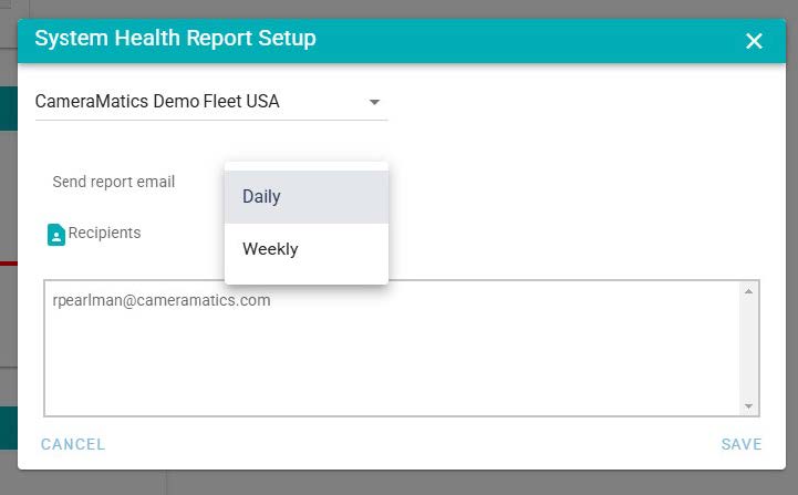 Finally, we have the System Health report. You can have an automated report sent out to show the health of the CameraMatics system at that time.