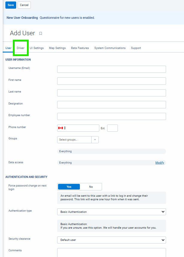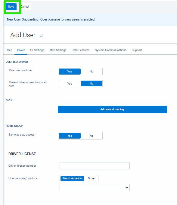Within the User profile that you have learned above, you will select the Driver tab at the top.