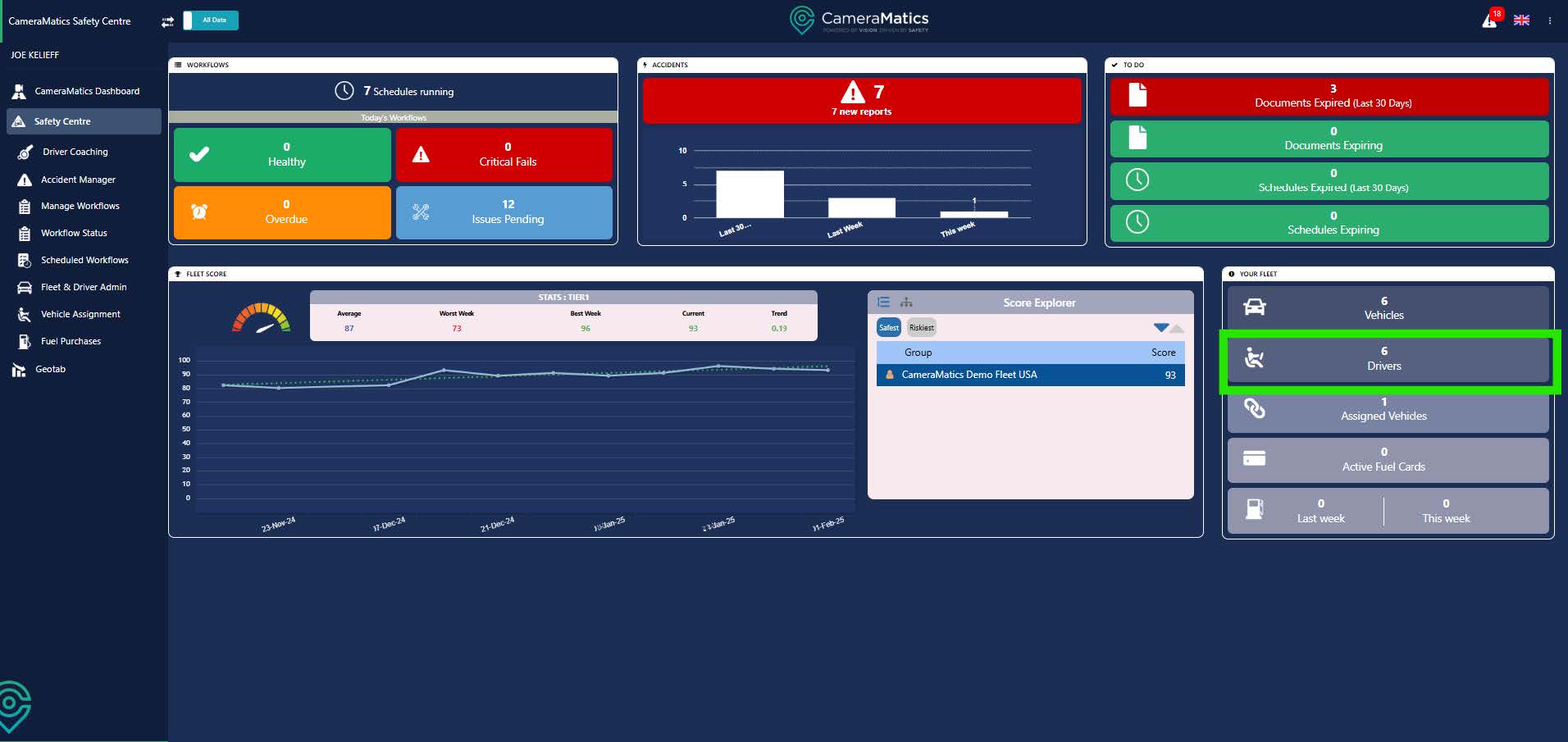 To have full coverage over your fleet and allow your drivers to complete workflows, you will first need to create profiles for them within the Safety Centre.