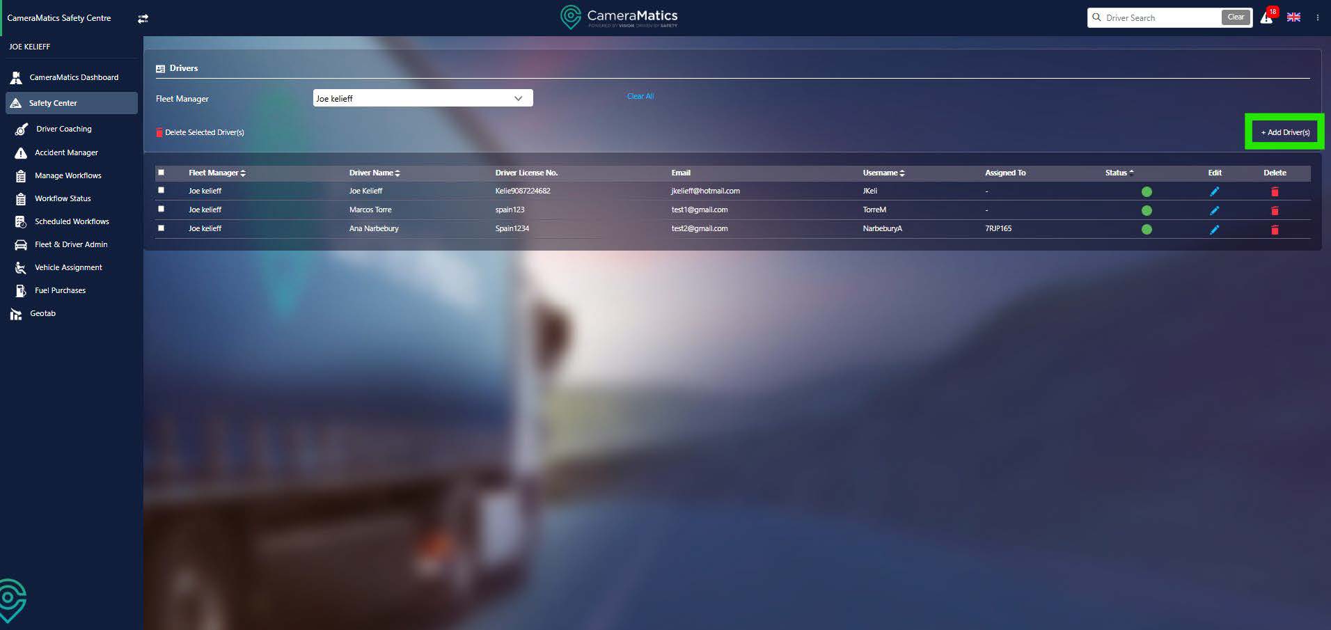 To add a driver profile click Add Driver(s) at the top right of the table.
