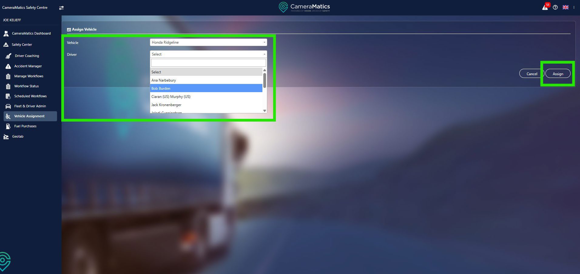 To assign a driver to a vehicle, you need to select the vehicle and then the driver. Once done, click assign, and the driver will then be assigned to the vehicle.