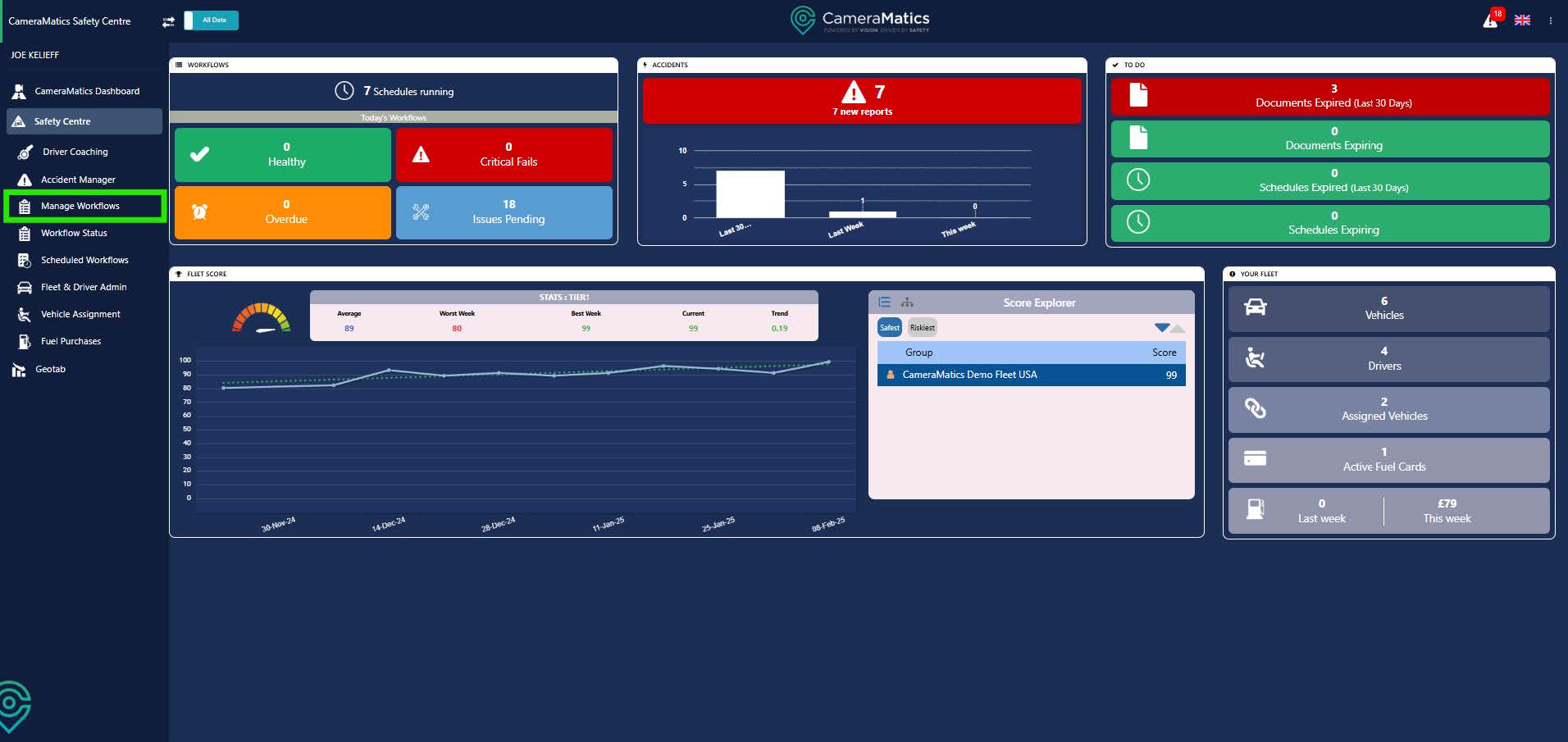 From the Safety Centre Dashboard, click on Scheduled Workflows.