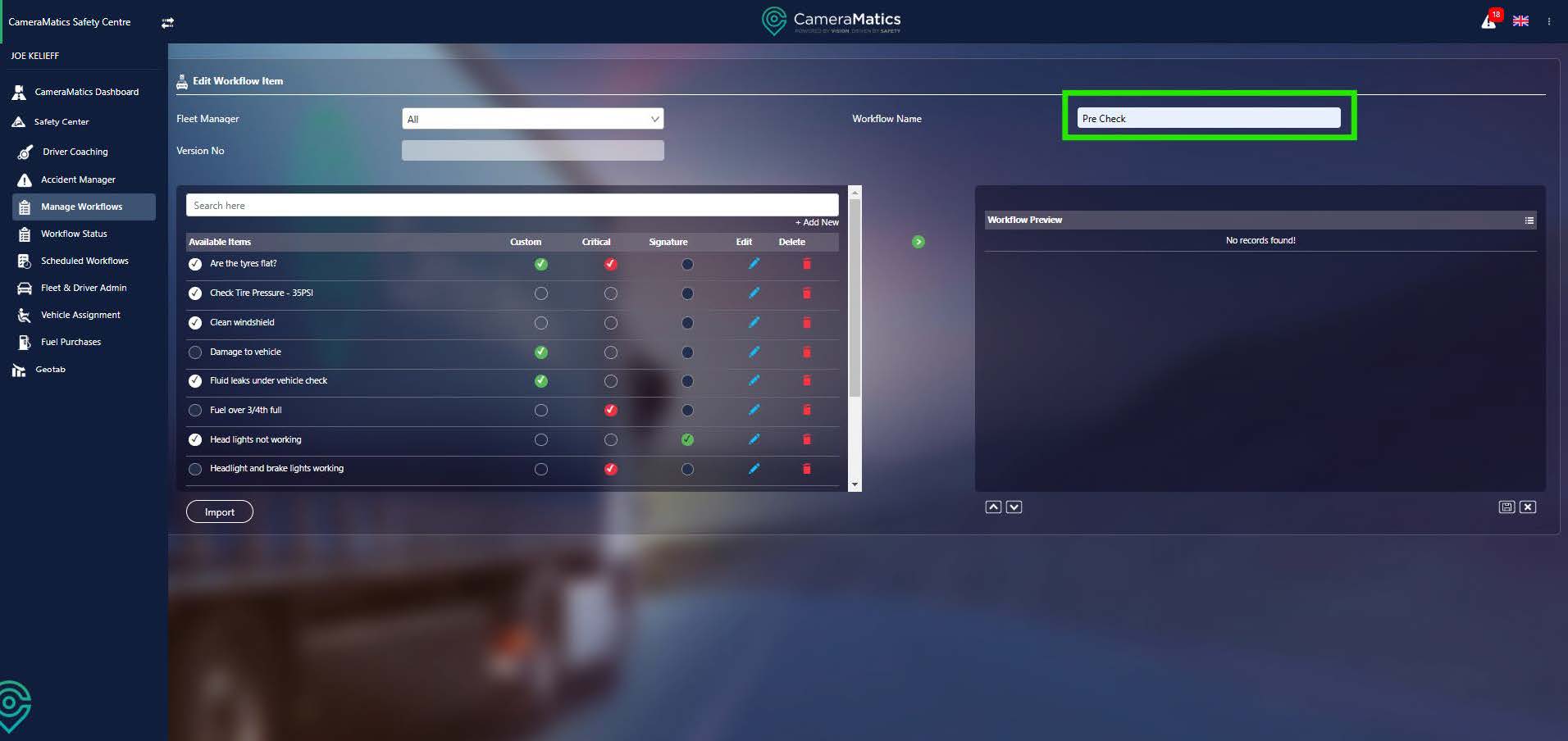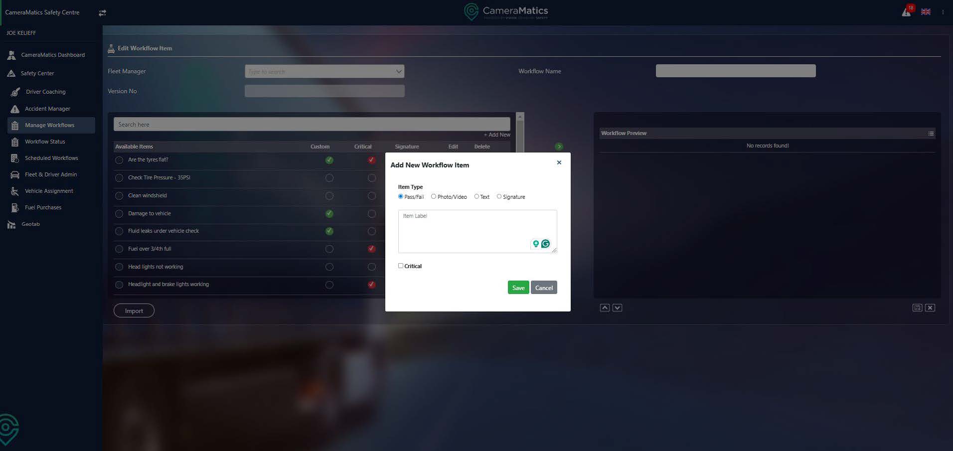 You can create and schedule different types of workflows in CameraMatics. All of them can then be assigned to specific drivers or employees, and then completed as required from the mobile app.