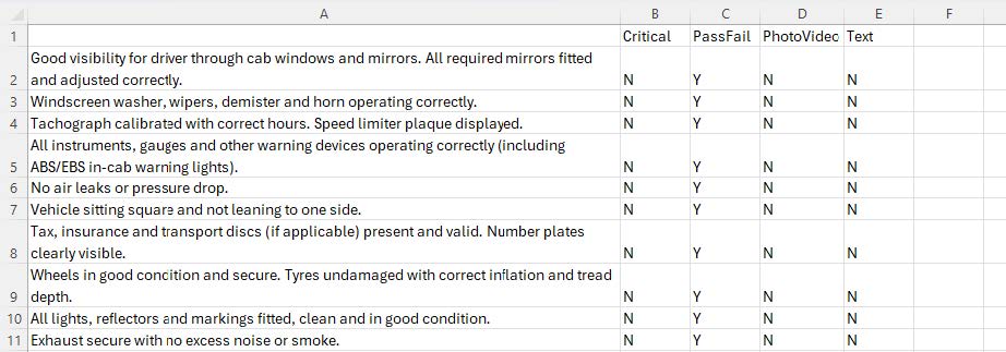 - Pass/Fail – the driver must mark the question or check as a pass or fail