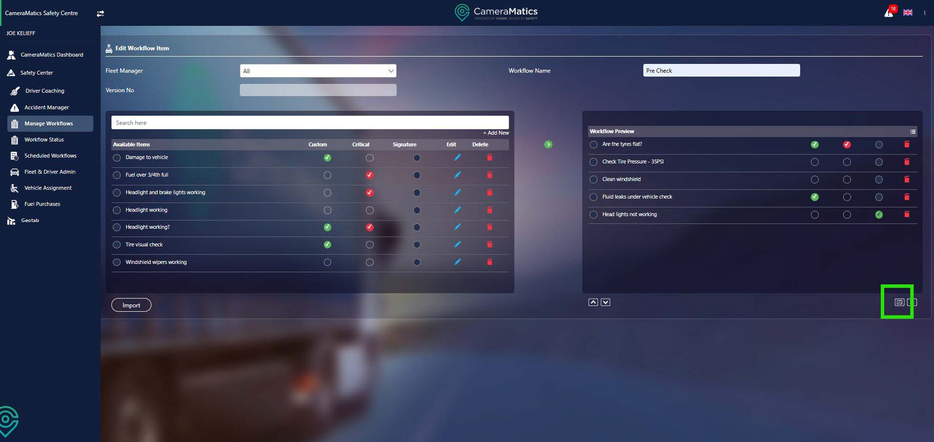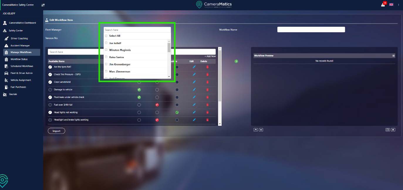 You will need to decide which fleet manager will be able to view this workflow. You can either type to search for the fleet manager or scroll to tick each. You can also select all.