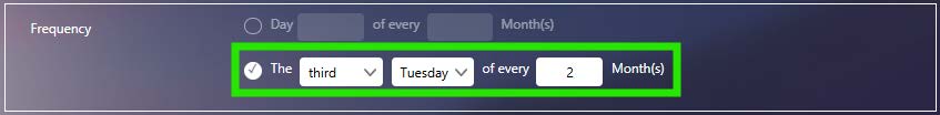 Alternatively, you can decide it to be on a specific day and then determine how many months have passed. This means it could be on the third Tuesday of every 2 months.
