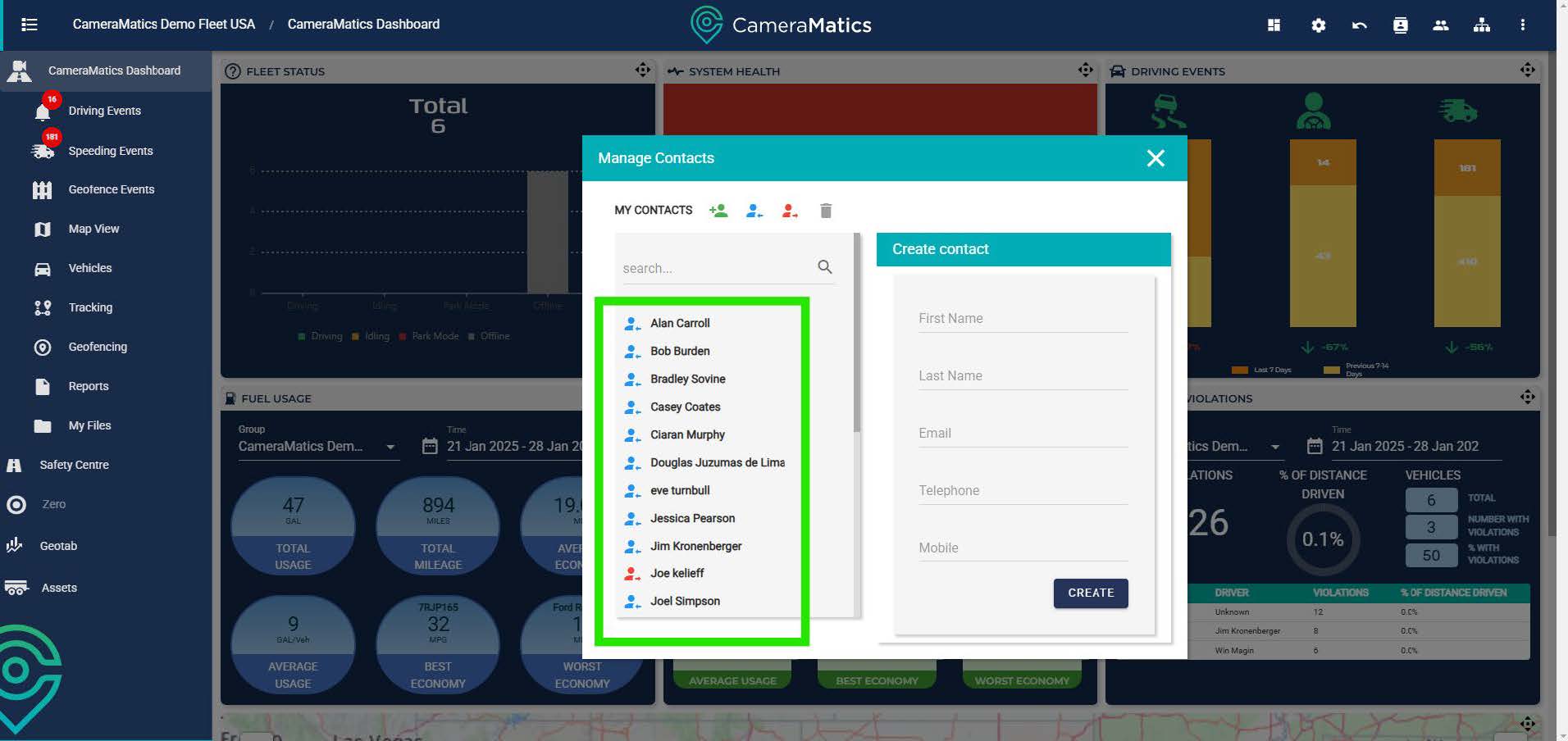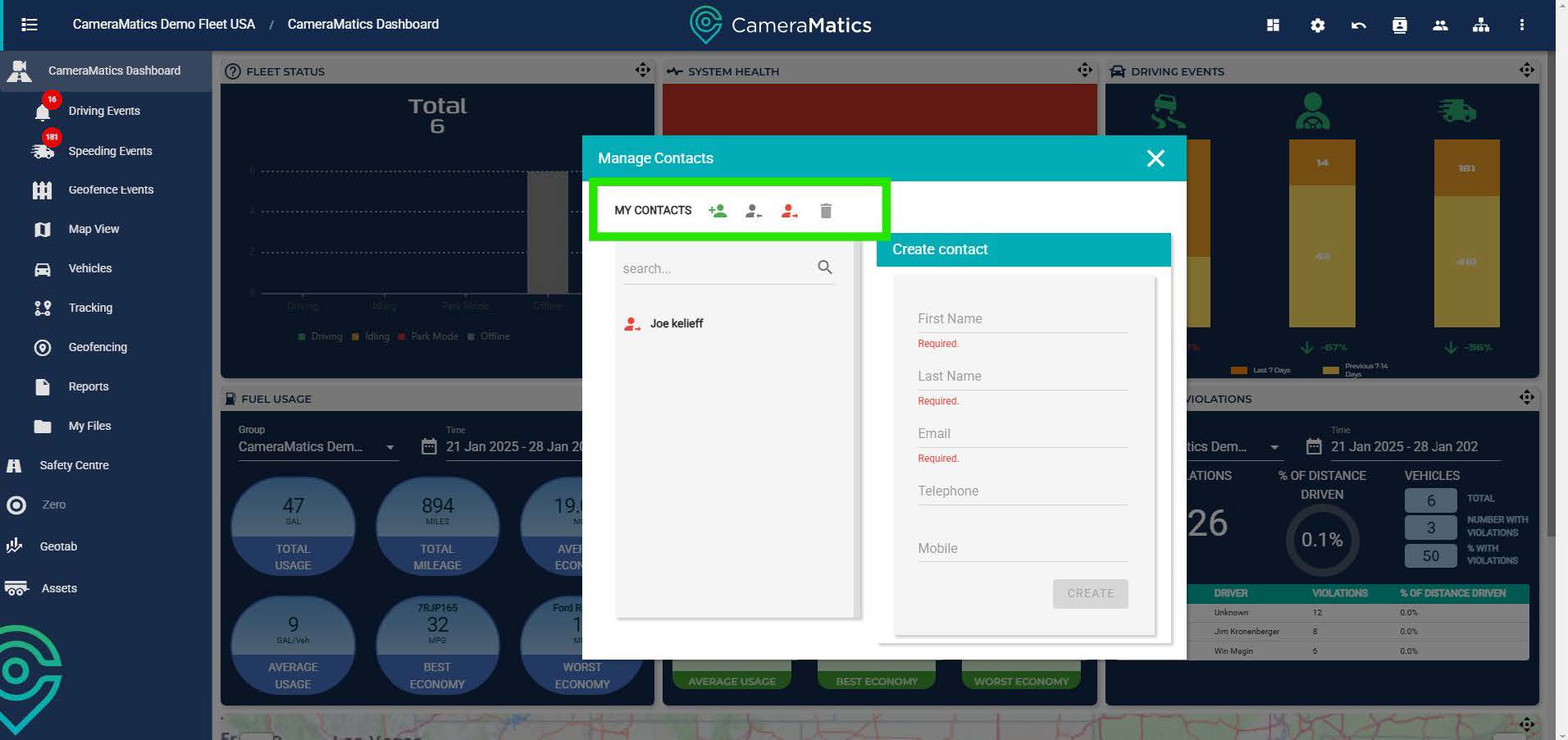 Contacts are individuals, typically outside your organisation, with whom you can share footage when required, typically for insurance or legal purposes.