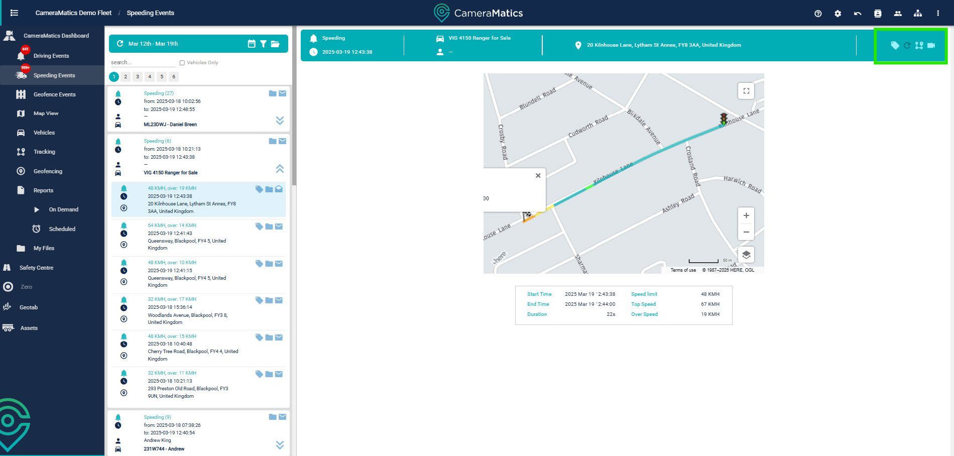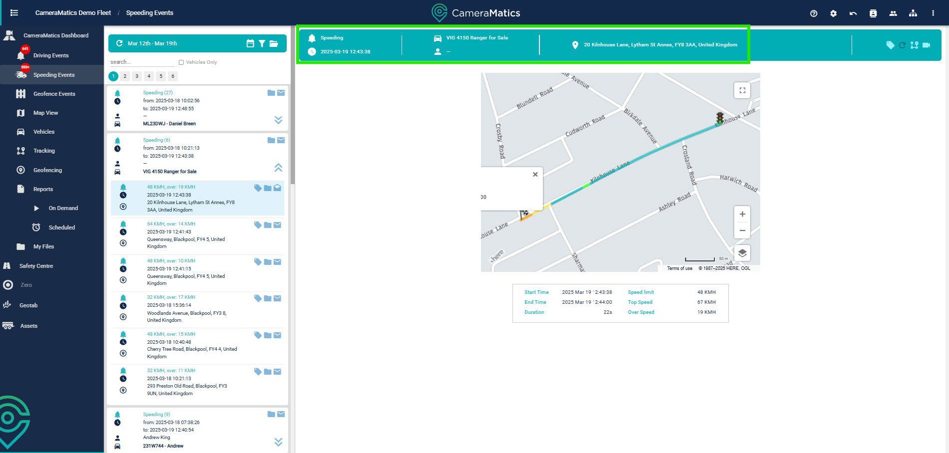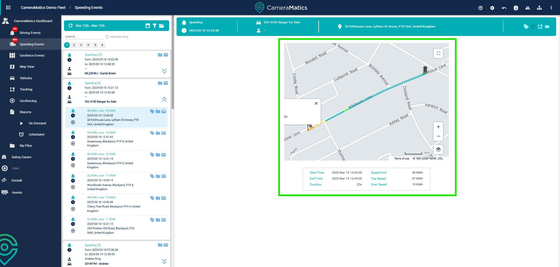 You will see a list of all speeding events in the left-hand side menu. From here, you can click on any event for more detail.