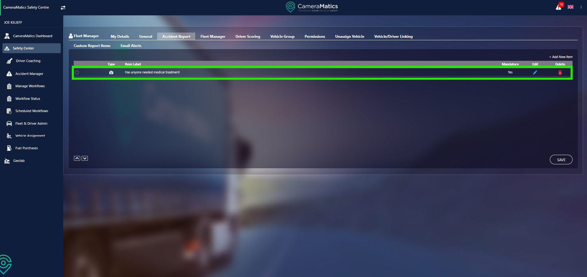 Your drivers can report any accidents that may have occurred while they have been travelling. They will be asked questions on the mobile app to collect data surrounding the accident. You may require additional questions to be asked from your driver’s and you can add this to the sequence of questions.
