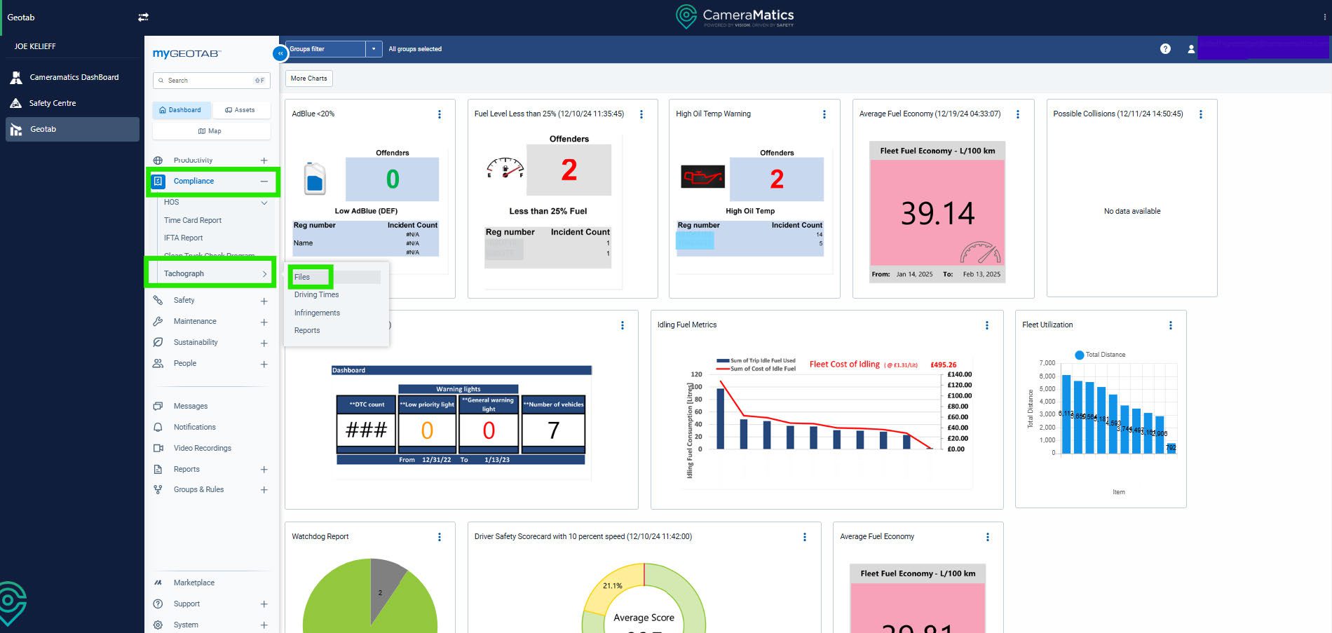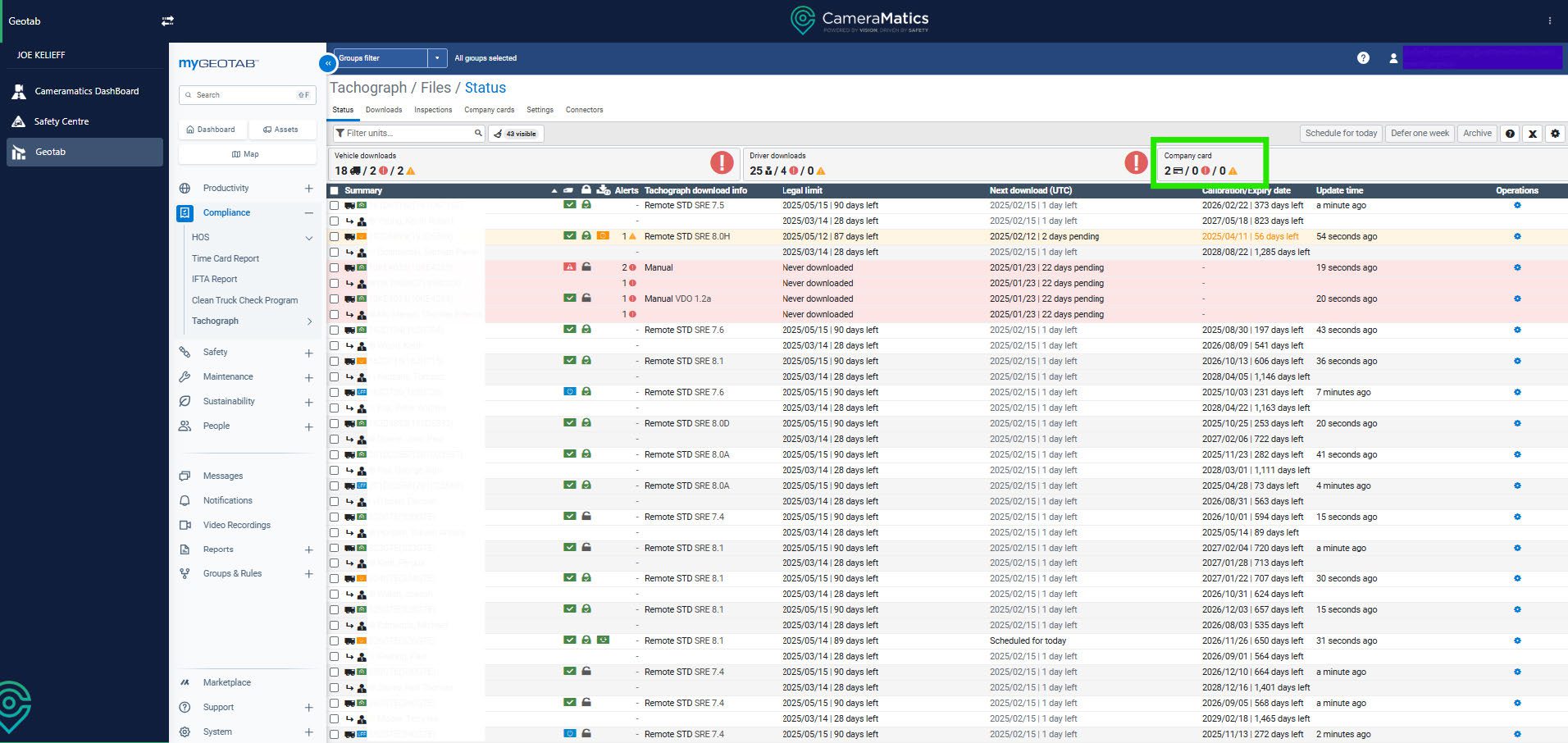 To view you company card you can do so by clicking on Compliance, then Tachograph and then files.